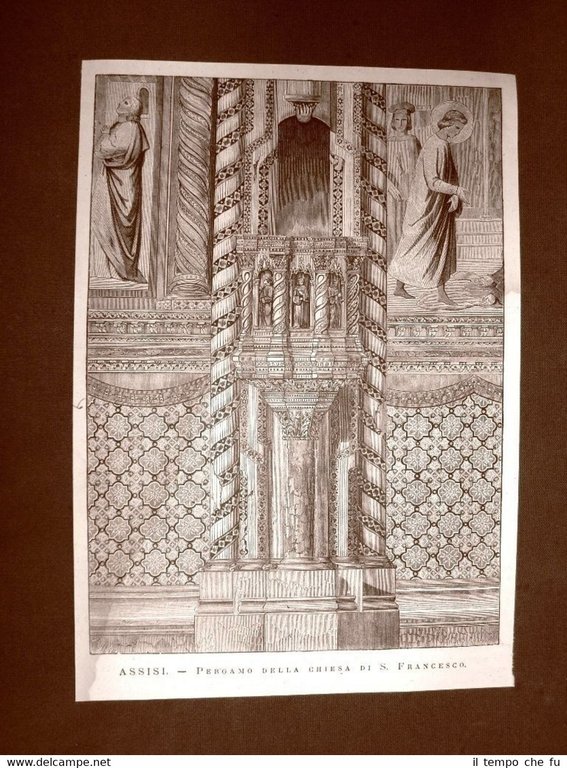 Assisi nel 1876 Pergamo della Chiesa di San Francesco | Stampe |