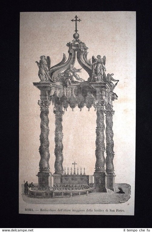 Baldacchino dell'altare maggiore basilica di San Pietro, Roma Incisione del 1867