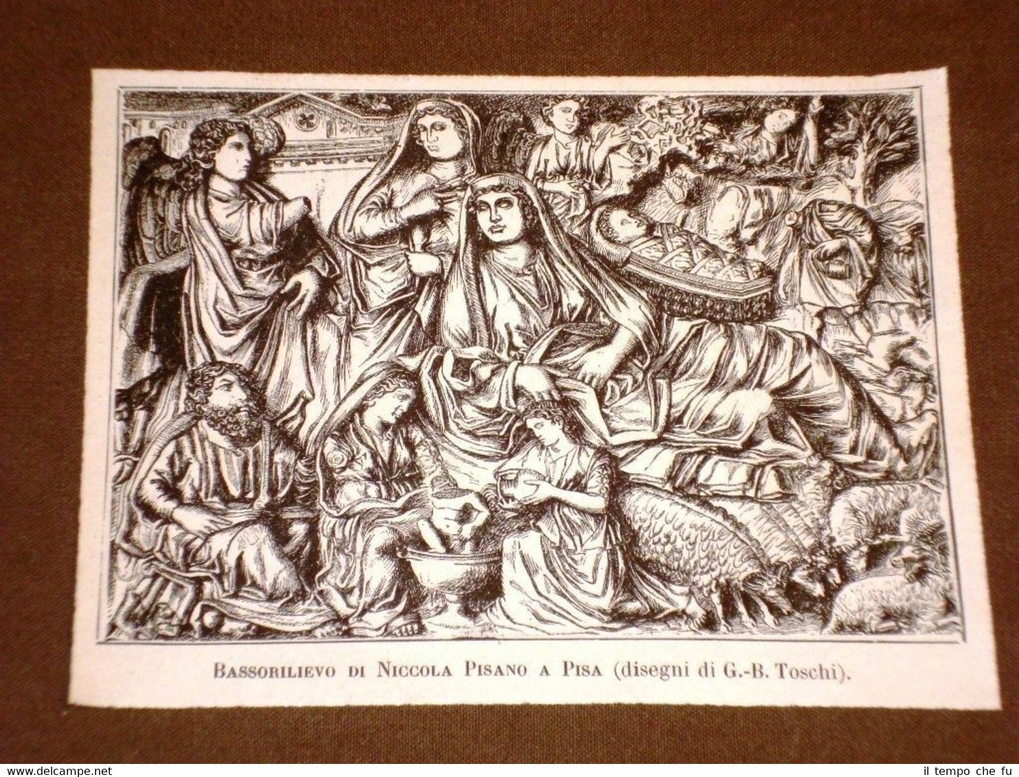 Rara Incisione Estratta da Rivista d'epoca del 1884. .incisione che ha quindi oltre 129 anni! Bassorilievo di Niccola Pisano a Pisa nel 1884 II1884-031 Dimensioni Cm 14,00 x 11,00 Qualora vogliate delle scansioni migliori contattateci, soddisferemo ogni vostra richiesta. PaypalCarta di creditoBonifico bancario Accuratamente adagiate su un cartoncino e protette da pellicola trasparente rigida,il tutto viene inserito dentro plico di adeguate dimensioni per proteggerne l'integrità.