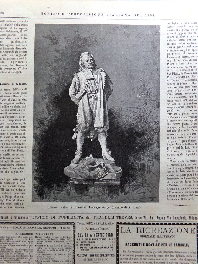 STAMPA in 1 pagina - dimensioni totali 37 x 27 cm circa (dimensioni della Stampa 22 x 16 cm circa) - FRONTE: Bernini, statua in bronzo di Ambrogio Borghi (Ettore A. Riera) - CONDIZIONI : BUONE - NOTE PARTICOLARI: NESSUNA (V. FOTO) - CODICE: EXP1884_17-04