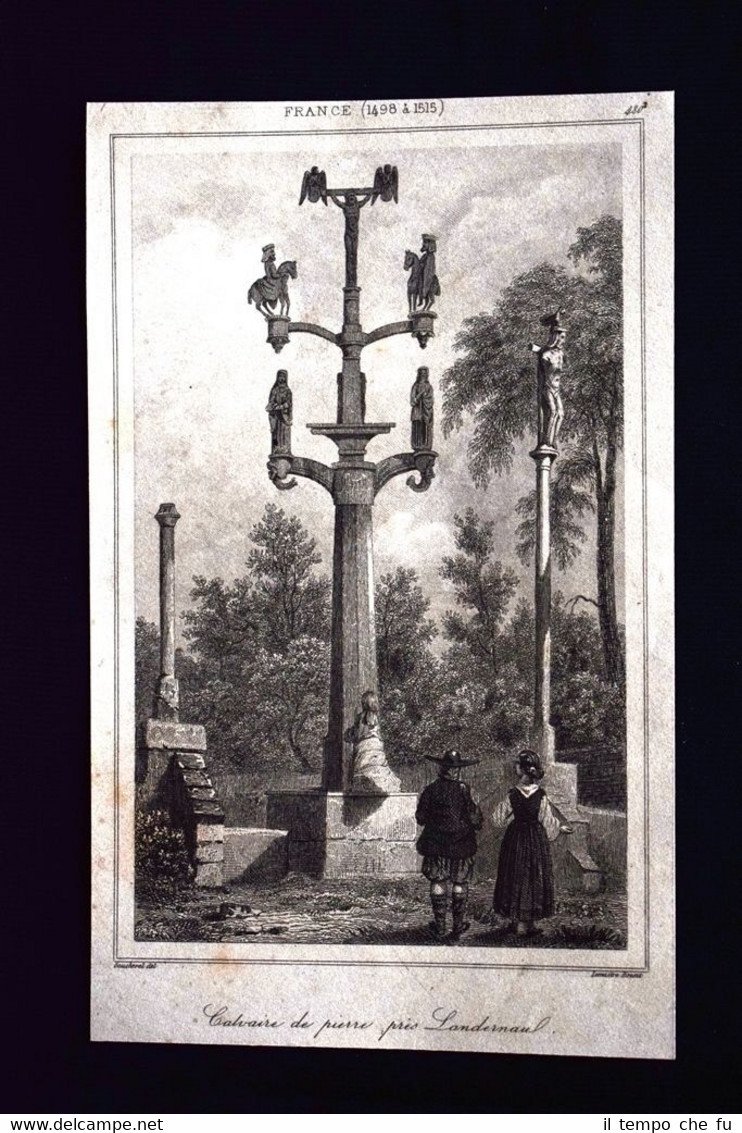Calvaire de pierre Landernau, France Incisione del 1850 L'Univers pittoresque | Stampe |