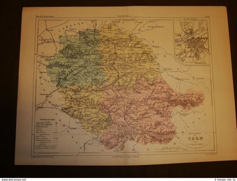 Carta, cartina o mappa del 1840 Tarn -Albi - Francia Malte Brun