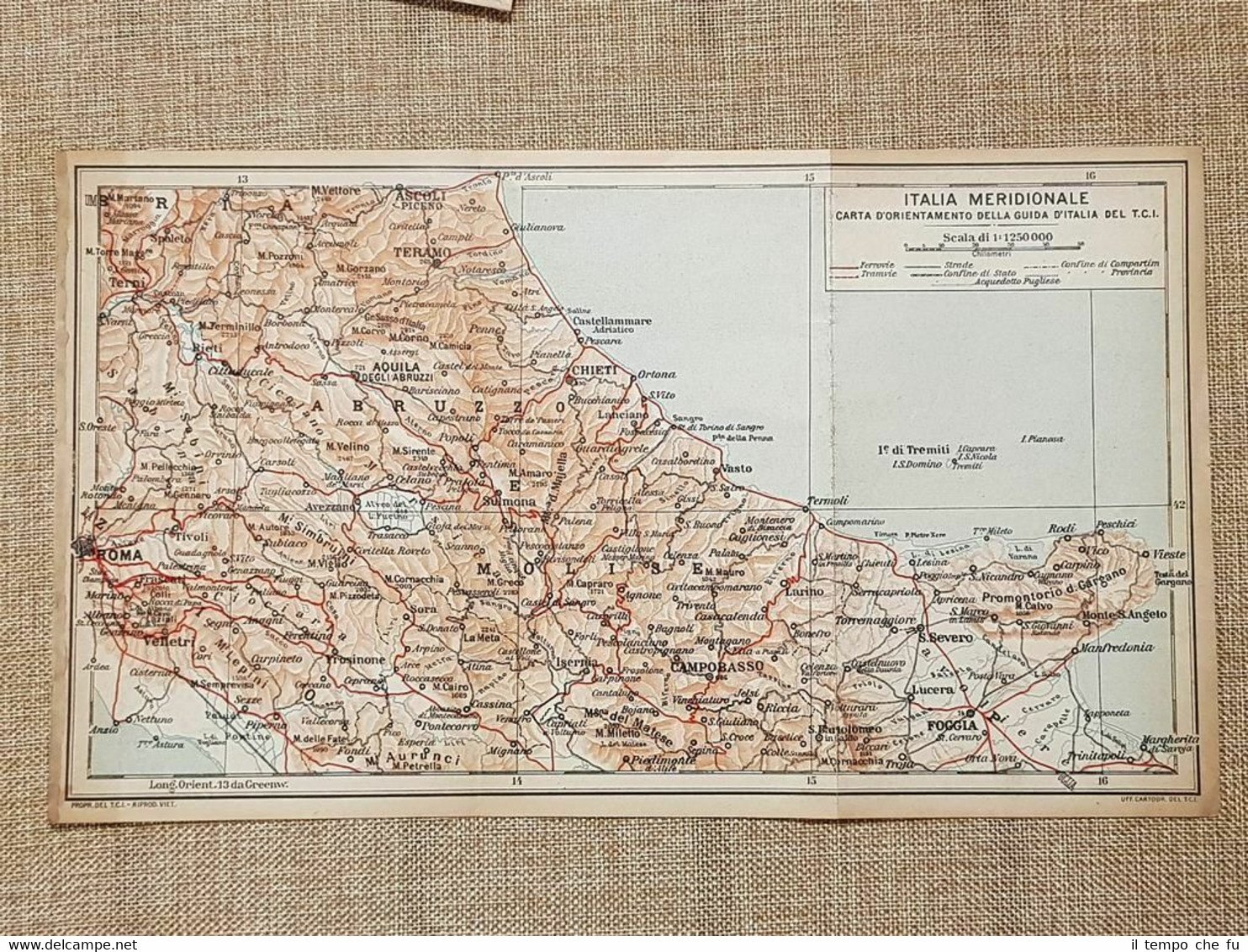 Carta geografica o cartina del 1926 Italia meridionale Touring Club d'Italia