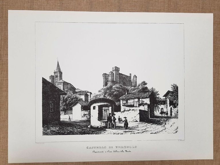 Grande veduta estratta da pubblicazione del 1965 Castello di Verzuolo – Saluzzo Tavola contenuta nella prestigiosa opera: Album delle Castella Feudali della Monarchia di Savoia Litografia di Enrico Gonin Editori Fratelli Doyen Codice prodotto: Litografie – 2235 Dimensioni: Cm 48,00 x 34,00 Questa stampa appartiene a una pregevole serie dedicata ai castelli del Piemonte, disegnata dall'artista torinese Enrico Gonin (1799-1870). L'autore debuttò nel 1838 e la sua vivace attività di incisore si riflette nell'"Album delle principali castella feudali della Monarchia di Savoia",concepito per accompagnare il monumentale lavoro di Vittorio Angius, "Sulle famiglie nobili della Monarchia di Savoia" (Torino, 1841-1857) che esplorava approfonditamente le casate nobili legate alla Casa Savoia, e le illustrazioni di Gonin ne offrivano un perfetto complemento visivo. Le litografie furono realizzate dalla Fratelli Doyen, successori della Doyen & C., fondata a Torino nel 1838 da Michele Doyen (1809-1871). La ditta Doyen, evolutasi in Fratelli Doyen dopo il 1850, divenne un punto di riferimento per la produzione di stampe durante il Risorgimento, contribuendo significativamente alla diffusione di idee e immagini che alimentavano il sentimento nazionale. Enrico Gonin è ricordato soprattutto per questa maestosa raccolta di litografie raffiguranti i castelli piemontesi. La sua collaborazione con Felice Festa fu determinante nell'introduzione della litografia a Torino; insieme, nel 1824, aprirono la prima casa litografica della città, rivoluzionando il modo in cui l'arte veniva riprodotta. L'"Album delle principali castella feudali della Monarchia di Savoia" non è solo un capolavoro artistico, ma anche un tesoro storico. Ogni illustrazione cattura la bellezza architettonica dei castelli e il ricco intreccio di storie, leggende ed eventi storici ad essi associati. Queste fortezze sono state silenti testimoni dell'evoluzione della storia italiana, dai torbidi feudali ai ferventi giorni dell'Unificazione. Questa stampa, in particolare, è un bellissimo esemplare con margini generosi e conservata in ottimo stato. I dettagli nitidi e la maestria artigianale offrono uno scorcio sull'eccellenza artistica del XIX secolo. PayPal Carta di credito Bonifico bancario Inserita dentro plico di adeguate dimensioni per proteggerne l'integrità Spedizione con posta ordinaria o raccomandata scelta dall’Acquirente nel momento del pagamento Clicca qui per accedere al nostro Store ed al suo sterminato archivio