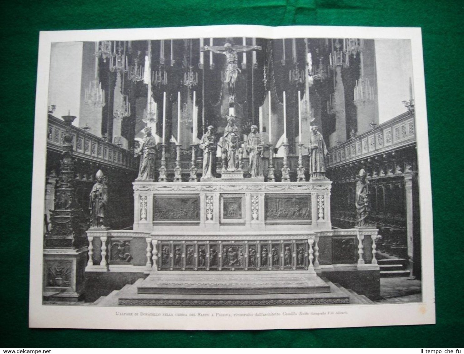 Chiesa Santo, Padova nel 1895 - L'altare di Donatello + tabella per carta-gloria