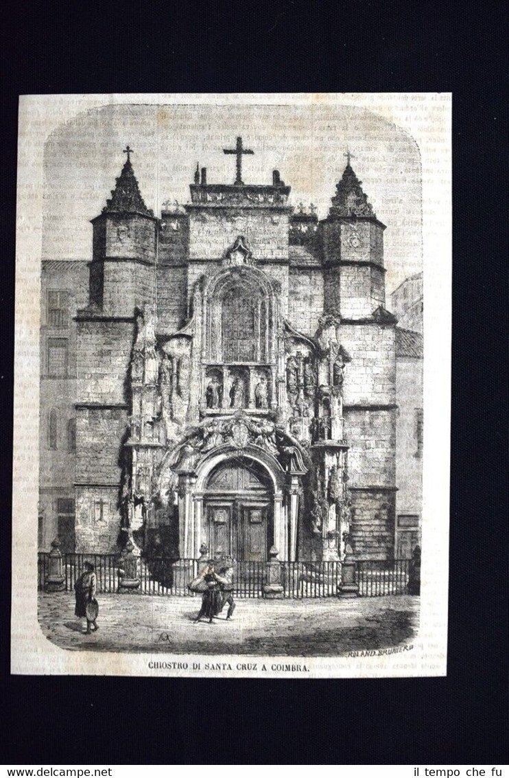 Chiostro di Santa Cruz a Coimbra, in Portogallo Incisione del 1871 | Stampe |