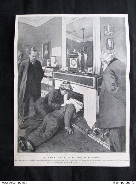 Rara stampa estratta da pubblicazione del 1905 .stampa che ha quindi oltre 113 anni! Come è morto Gabriel Syveton? La posizione nella qualle è stato ritrovato il corpo, ricostruita con l'aiuto della signora Syveton, davant al signor Boucard, giudice istruttore, e agli esperti Debrie - Boucard - Syveton - Agente rappresentante il cadavere - Perissé Dimensioni Cm 23,00 x 31,00 Illustration 1905 - 010 Qualora vogliate delle scansioni migliori contattateci, soddisferemo ogni vostra richiesta. Paypal Carta di credito Bonifico bancario Accuratamente adagiate su un cartoncino e protette da pellicola trasparente rigida, il tutto viene inserito dentro plico di adeguate dimensioni per proteggerne l'integrità.