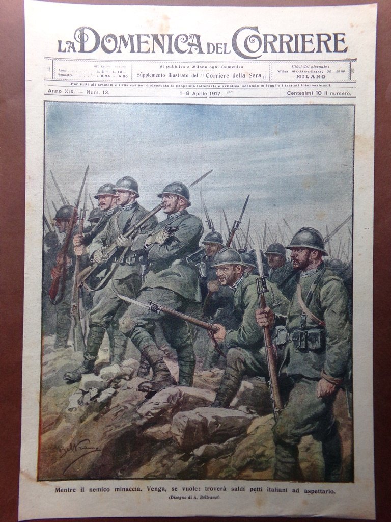 Copertina Domenica Corriere nr. 13 del 1917 WW1 Mentre il Nemico Avanza Italiani