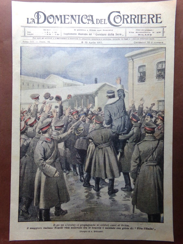 Copertina Domenica Corriere nr. 14 del 1917 WW1 Propaganda Soldati Russi Tonelli