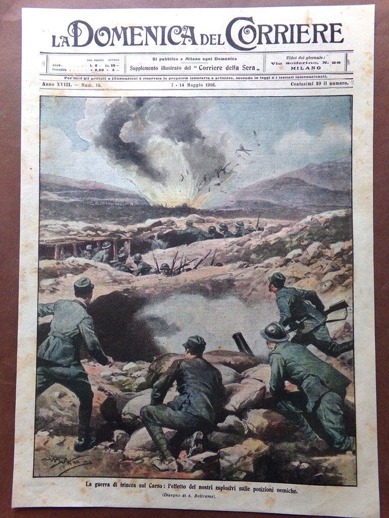 Copertina Domenica Corriere nr. 19 del 1916 WW1 Guerra Trincea Carso Esplosivi