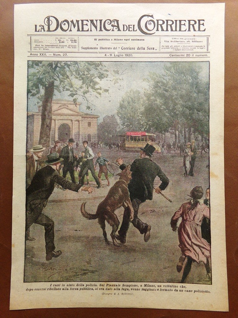 Copertina Domenica Corriere nr. 27 del 1920 Cane Poliziotto Piazzale Sempione