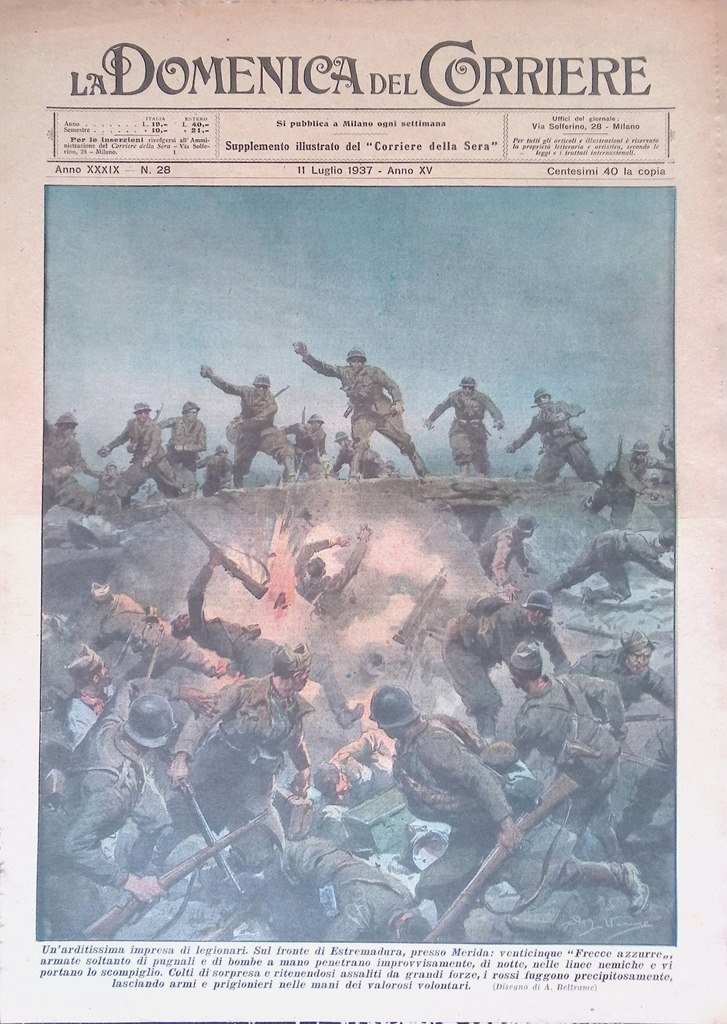 Copertina Domenica Corriere nr. 28 del 1937 Legionari Fronte Estremadura Merida