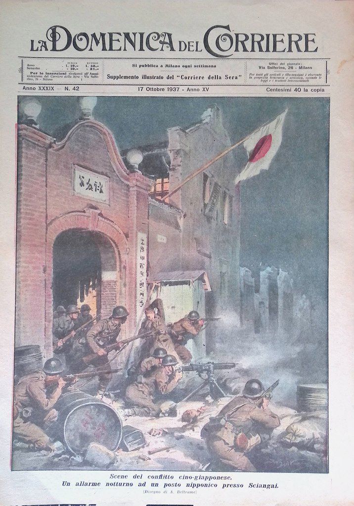 Copertina Domenica Corriere nr. 42 del 1937 Guerra Cina Giappone Shangai Allarme