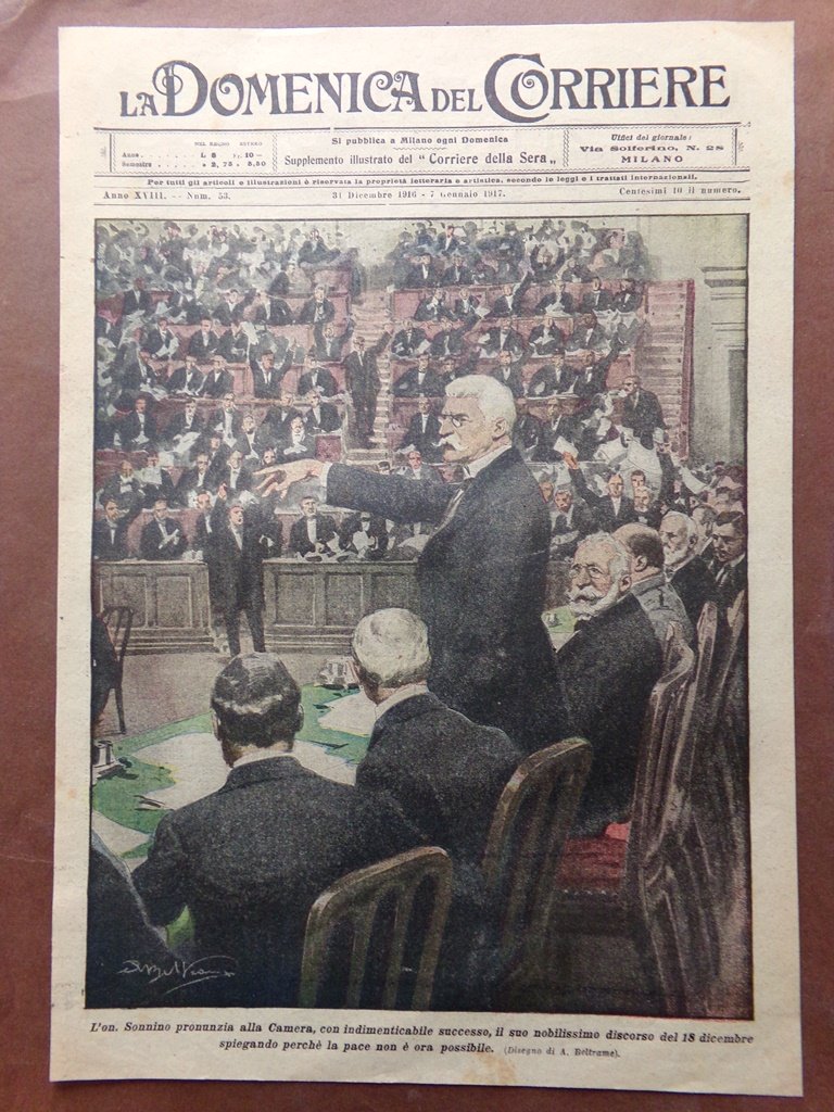 Copertina Domenica Corriere nr. 53 del 1916 WW1 Sonnino Camera Pace Impossibile