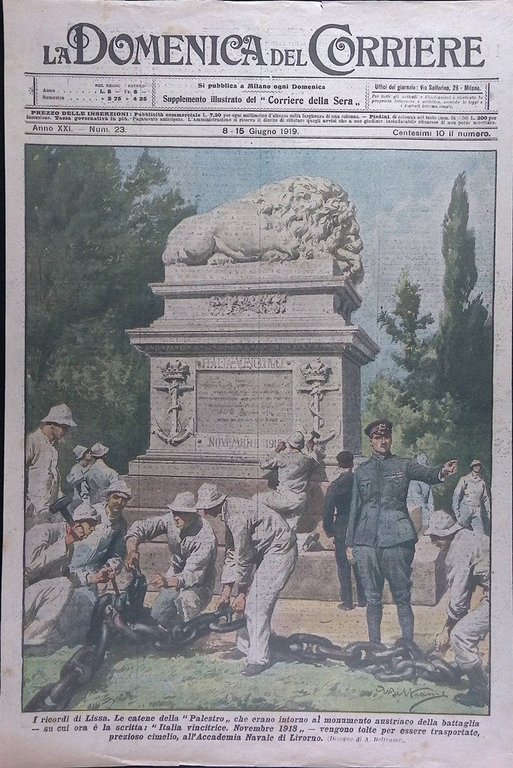 Copertina Domenica del Corriere nr. 23 del 1919 Catene di Palestro Rimosse Lissa