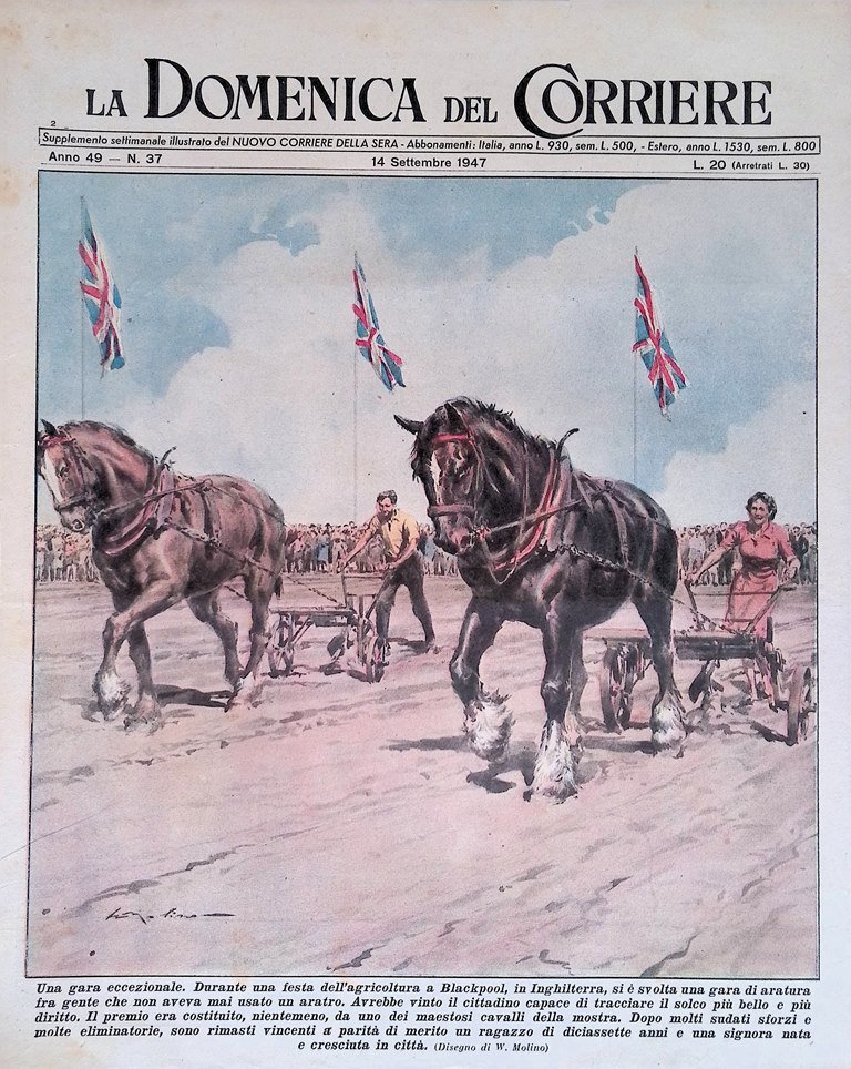 Durante una festa dell'agricoltura a Blackpool, in Inghilterra, si è svolta una gara di aratura fra gente che non aveva mai usato un aratro. Avrebbe vinto il cittadino capace di tracciare il solco più bello e più diritto. Il premio era costituito, nientemento, da uno dei maestosi cavalli della mostra. Dopo molti sudati sforzi e molte eliminatorie, sono rimasti vincenti a parità di merito un ragazzo di 17 anni e una signora nata e cresciuta in città (Walter Molino)