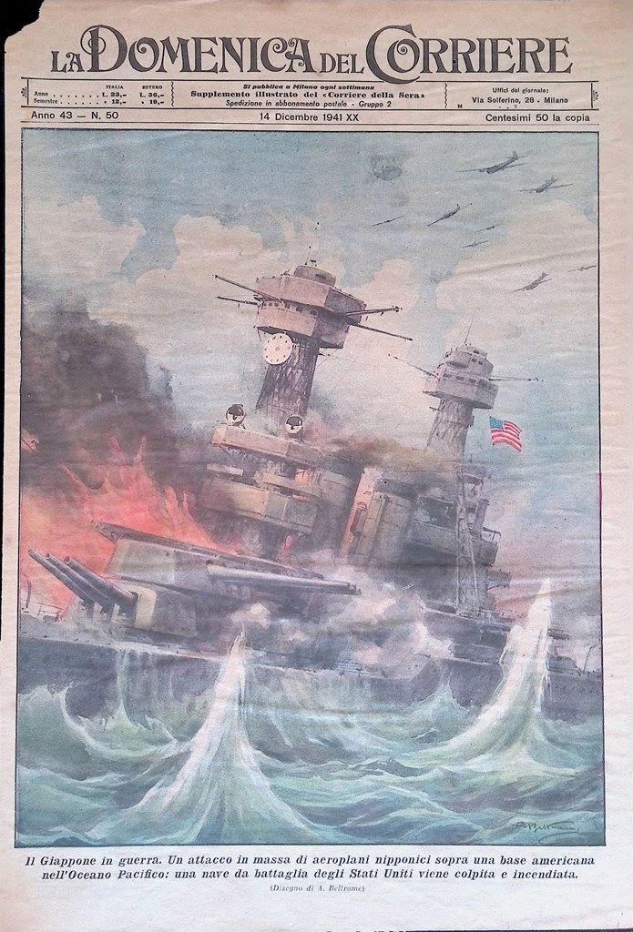 Copertina Domenica del Corriere nr. 50 del 1941 WW2 Giappone in Guerra Pacifico