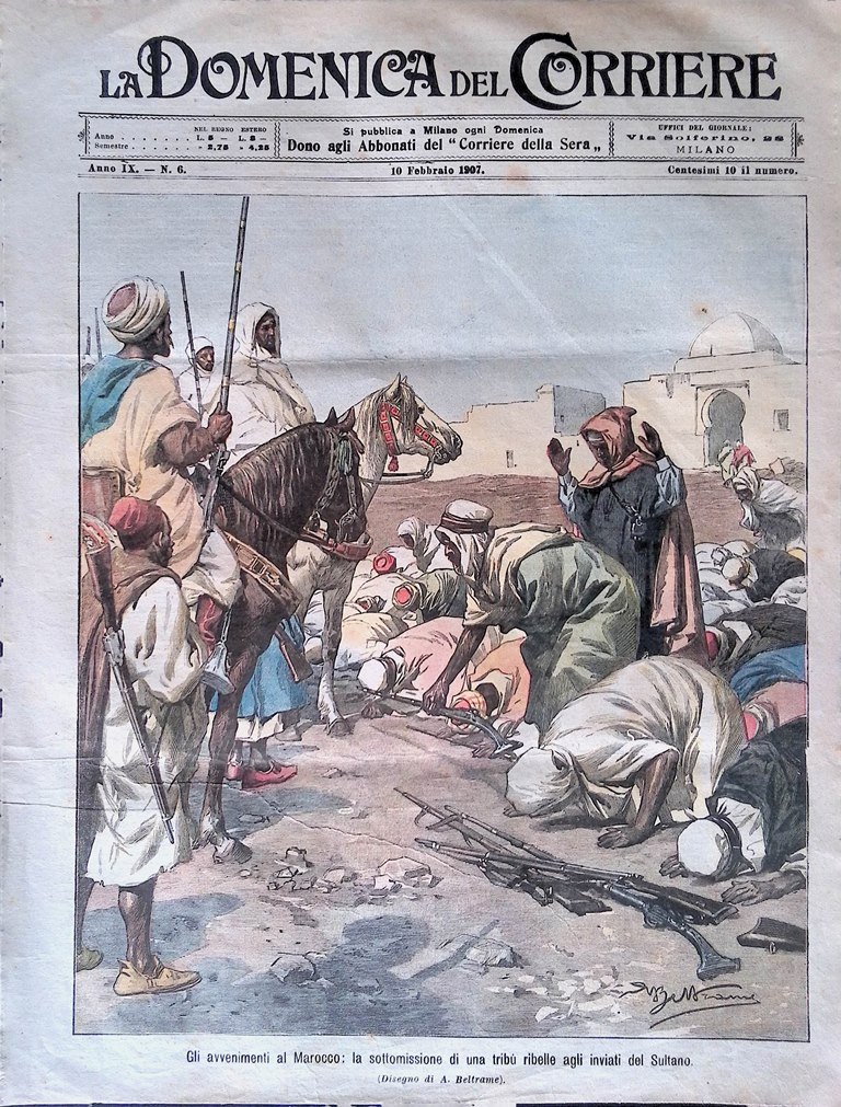 Copertina Domenica del Corriere nr. 6 del 1907 Sottomissione Tribù in Marocco