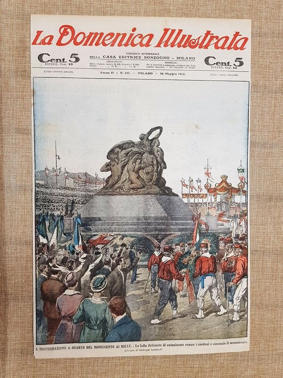 Copertina Domenica Illustrata 16 maggio 1915 Quarto Monumento ai Mille Garibaldi
