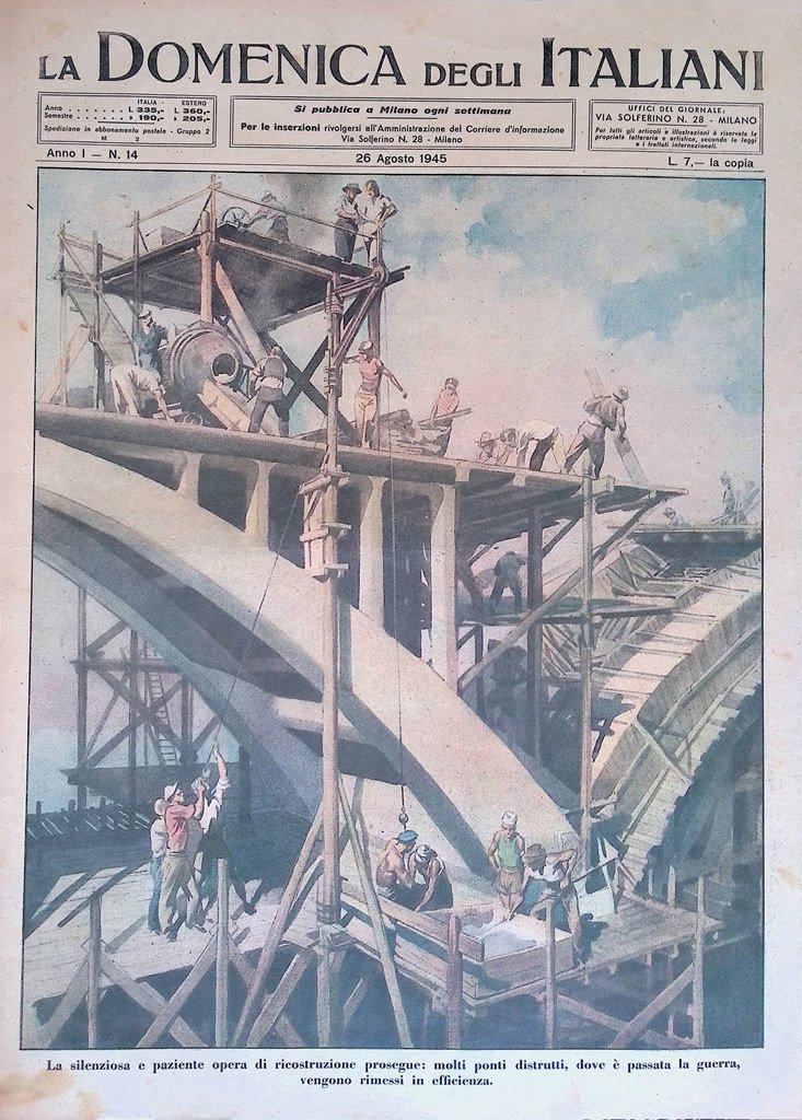 Copertina Domenica Italiani nr. 14 del 1945 WW2 Ricostruzione di Ponti Distrutti