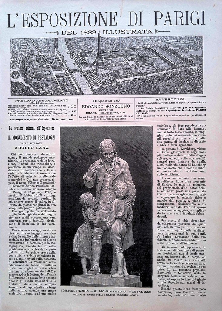 Copertina Esposizione di Parigi nr. 18 del 1889 Svizzera Pestalozzi Josef Lanz