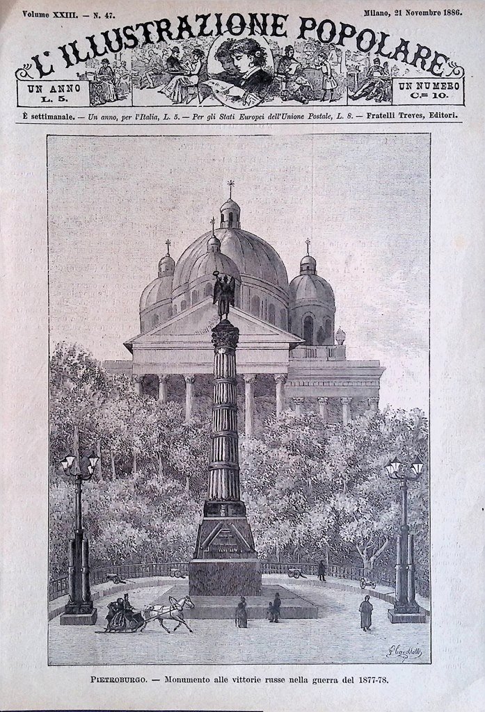 Copertina Illustrazione Popolare nr. 47 del 1886 PietroBurgo Monumento Vittorie
