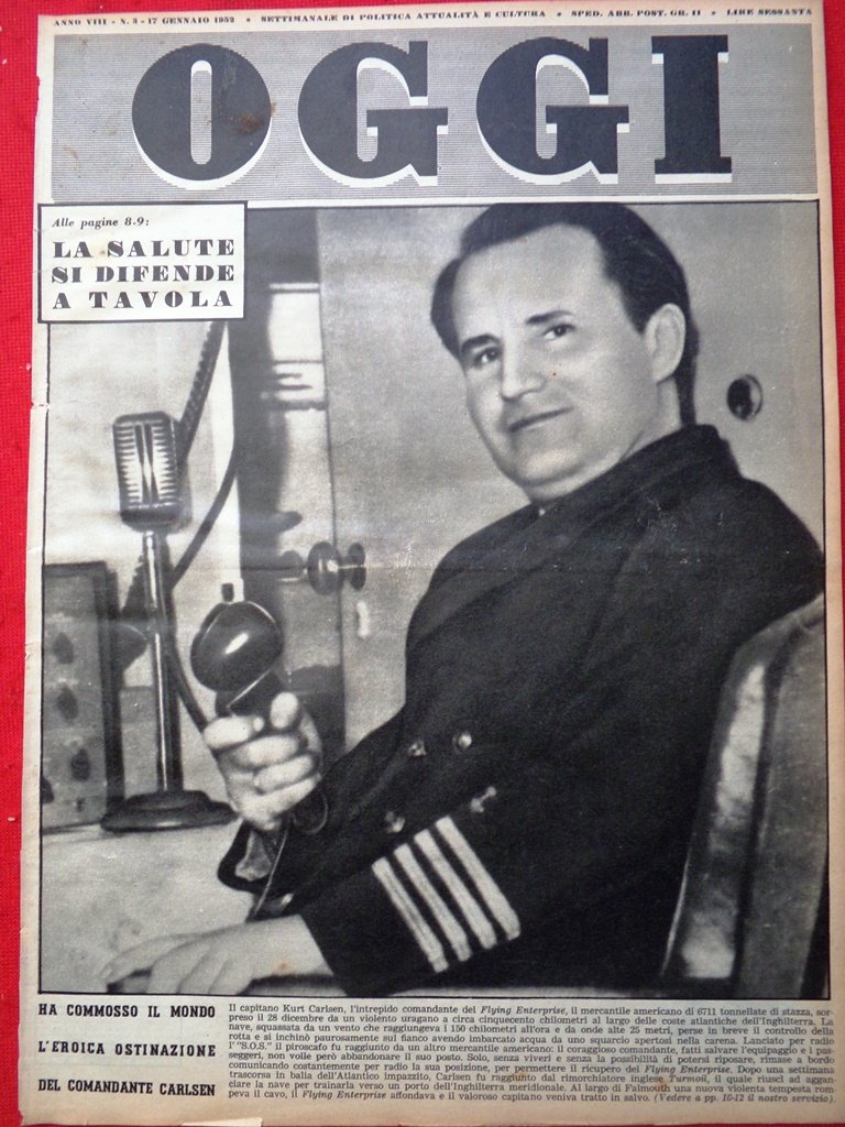 Copertina Oggi nr. 3 del 1952 L'eroica Ostinazione del Comandante Kurt Carlsen