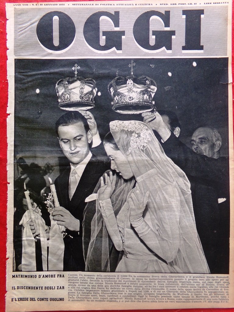 Copertina Oggi nr. 5 del 1952 Matrimonio Sveva della Gherardesca Nicola Romanoff