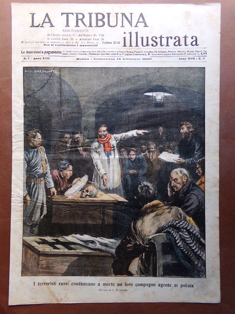 Copertina Tribuna Illustrata nr. 7 del 1909 Terroristi Russi condanna a Morte