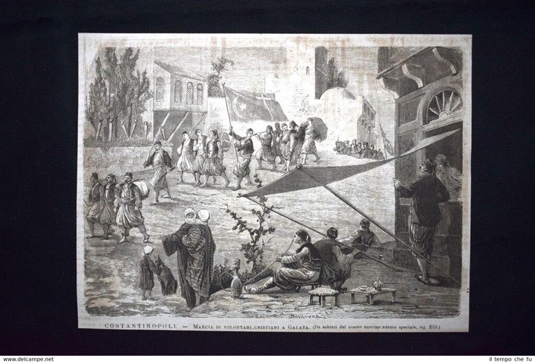 Costantinopoli - Marcia di volontari cristiani a Galata Incisione del 1876 | Stampe |
