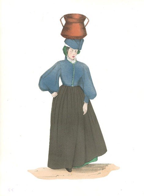 Costume caratteristico del luogo, disegnato, stampato e colorato a mano dal pittore Aldo Fornoni coadiuvato dalla pittrice Maria Angela Grassi