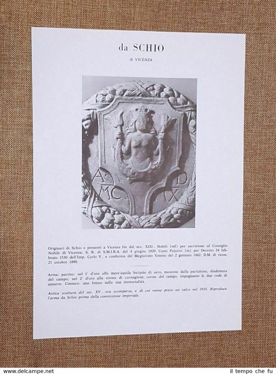 Da Schio di Vicenza Stemma Famiglia Nobile Nobiltà Araldica