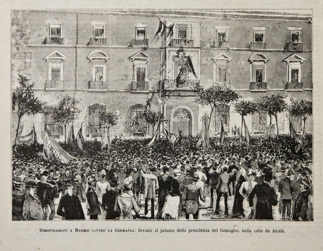 Dimostrazioni a Madrid contro la Germania: davanti al palazzo della presidenza del Consiglio, nella calle de Alcalà