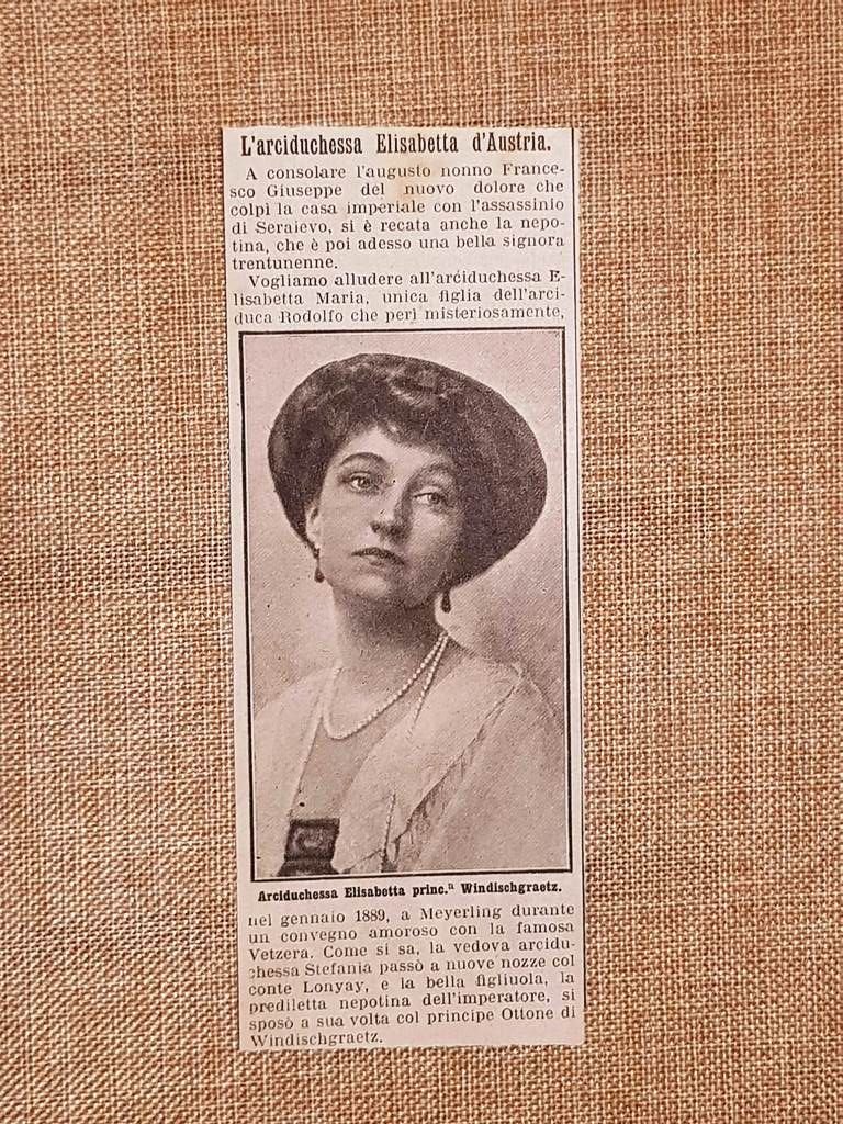Elisabetta Maria d'Asburgo-Lorena nel 1914 Laxenburg, 1883 – Vienna, 1963 Erzsi Rara stampa estratta da pubblicazione del 1914 Elisabetta Maria d'Asburgo-Lorena nel 1914 Laxenburg, 1883 – Vienna, 1963 Nota come Erzsi Codice prodotto: VIP-188 Dimensioni Cm 6,00 x 16,00