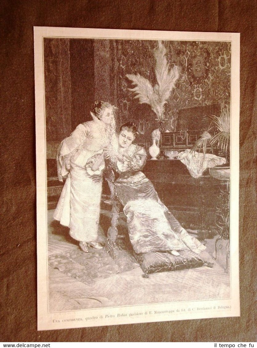 Rara Incisione Estratta da Rivista d'epoca del 1887 Esposizione di Belle Arti di Venezia nel 1887 Una confidenza Quadro di Pietro Bedini II1887-044T Cm 17,00 x 24,00 Qualora vogliate delle scansioni migliori contattateci, soddisferemo ogni vostra richiesta. Paypal Carta di credito Bonifico bancario Accuratamente adagiate su un cartoncino e protette da pellicola trasparente rigida il tutto viene inserito dentro plico di adeguate dimensioni per proteggerne l'integrità