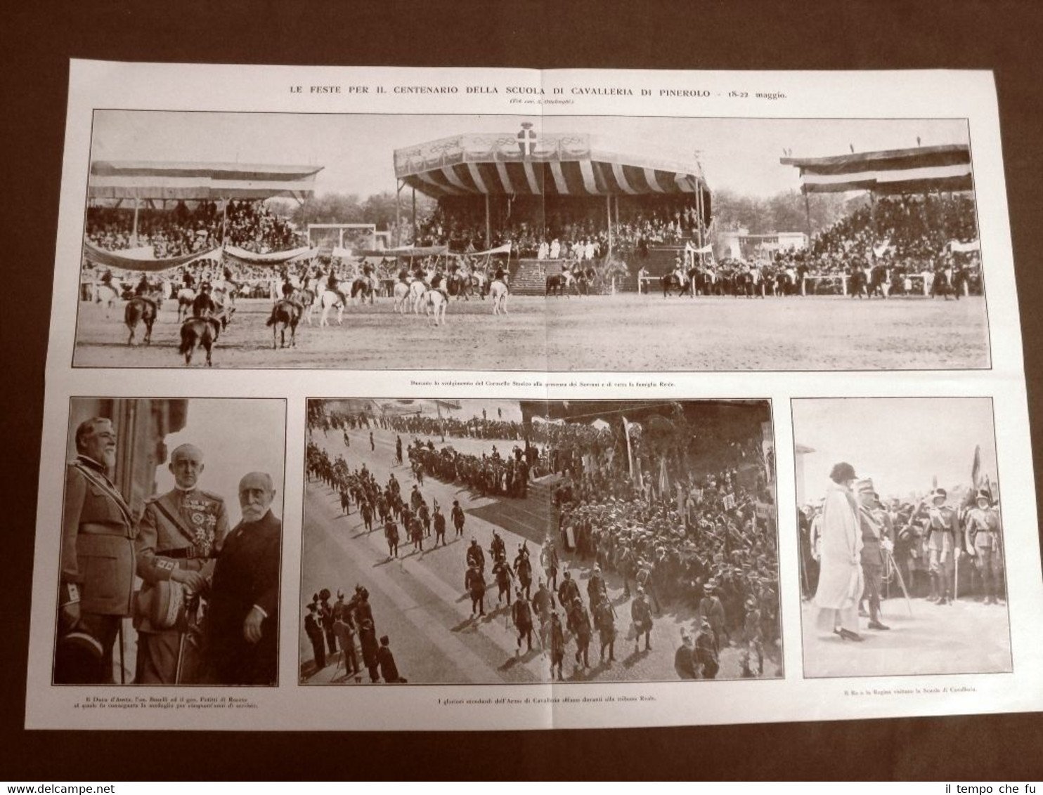 Rara stampa Estratta da Rivista d'epoca del 1924 . .stampa che ha quindi oltre 92 anni! Stampa enorme Feste per il centenario della Scuola di Cavalleria di Pinerolo 18 - 22 maggio 1924 Carosello storico innanzi la Famiglia Reale Duca d'Aosta, Onorevole Boselli, Generale Petitti di Roreto Stendardi dell'Arma di Cavalleria Re Vittorio Emanuele III di Savoia e la Regina Elena alla Scuola di Cavalleria Palco Reale Ufficiali di Cavalleria degli Stati Europei + Dario Niccodemi nel 1924 La casa segreta II1924-020 Dimensioni Fronte/retro Cm 56,00 x 38,00 + Cm 28,00 x 38,00 + Cm 28,00 x 38,00 Qualora vogliate delle scansioni migliori contattateci, soddisferemo ogni vostra richiesta. PaypalCarta di creditoBonifico bancario Accuratamente adagiate su un cartoncino e protette da pellicola trasparente rigida,il tutto viene inserito dentro plico di adeguate dimensioni per proteggerne l'integrità.