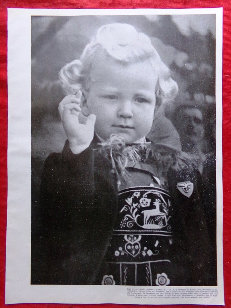 Fotografia del 1939 Principe di Napoli con costume Val Gardena Piccolo Alpinista