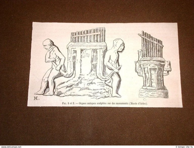 Rara Incisione Estratta da Rivista d'epoca del 1872 Gravure année 1872 Musée d'Arles Orgues antiques sculptées sur des monuments MAG1872-010 Dimensioni Cm 15,00 x 9,00 Qualora vogliate delle scansioni migliori contattateci, soddisferemo ogni vostra richiesta. Paypal Carta di credito Bonifico bancario Accuratamente adagiate su un cartoncino e protette da pellicola trasparente rigida, il tutto viene inserito dentro plico di adeguate dimensioni per proteggerne l'integrità.