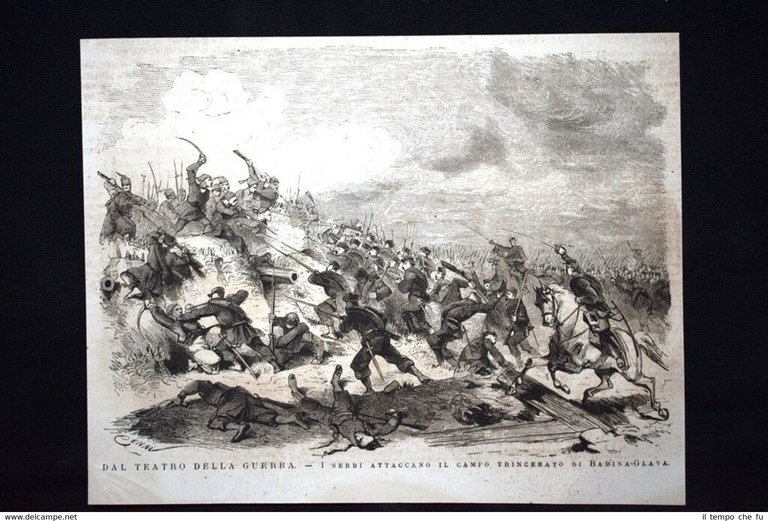 Guerra Serbia-Turchia:Serbi attaccano il campo Babina-Glava Incisione del 1876