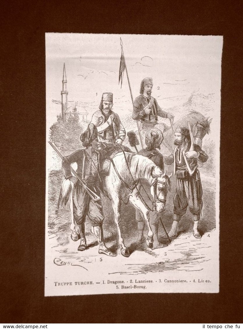 Rara Incisione Estratta da Rivista d'epoca del 1876 . .incisione che ha quindi oltre 140 anni! Guerra tra Serbia e Turchia nel 1876 Le divise delle truppe della Turchia Dragone, lanciere, cannoniere, bascì - bozug II1876-077 Dimensioni Cm 11,00 x 16,00 Qualora vogliate delle scansioni migliori contattateci, soddisferemo ogni vostra richiesta. PaypalCarta di creditoBonifico bancario Accuratamente adagiate su un cartoncino e protette da pellicola trasparente rigida,il tutto viene inserito dentro plico di adeguate dimensioni per proteggerne l'integrità.