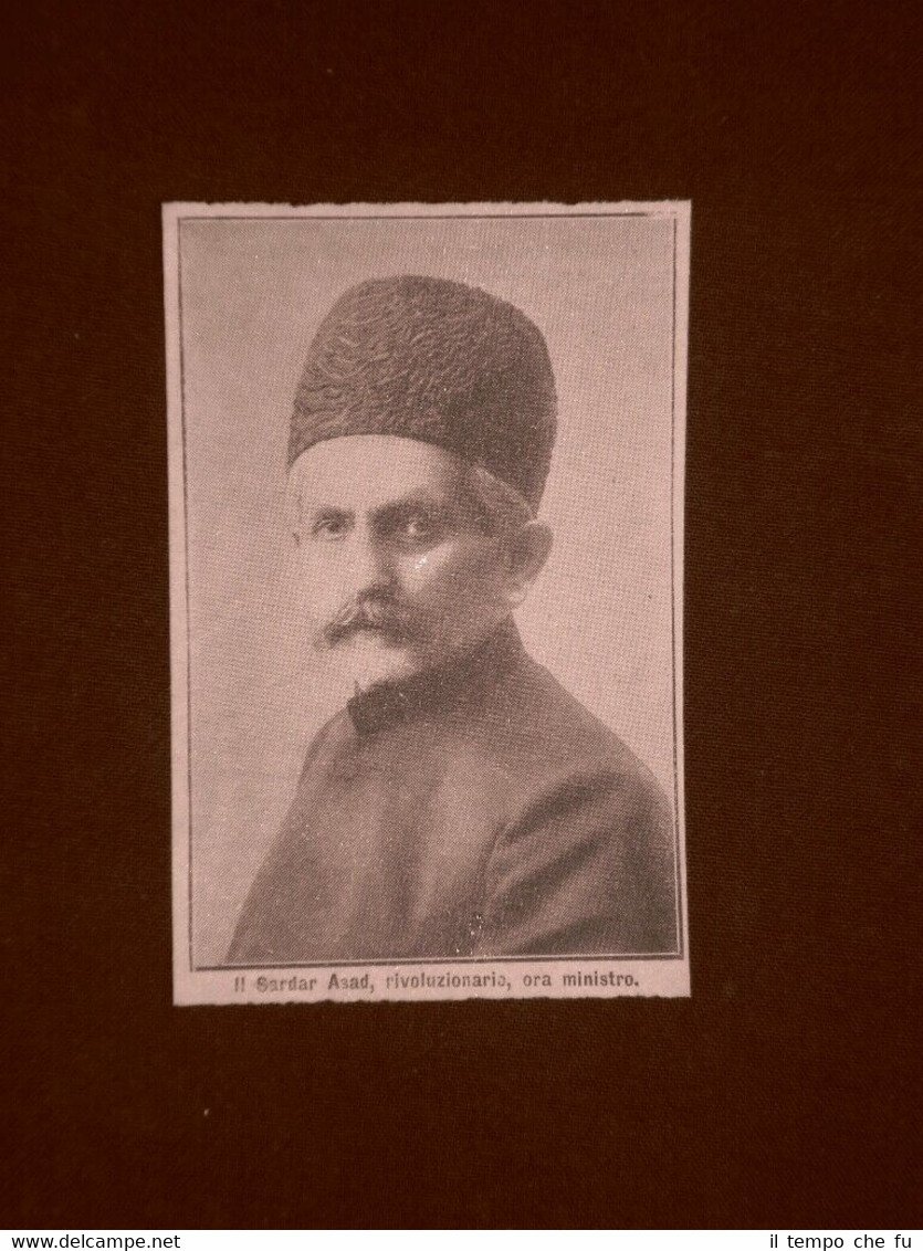 Rara stampa estratta da pubblicazione del 1910. .stampa che ha quindi oltre 109 anni! Haj Ali-Gholi Khan Sardar Asaad II nel 1910 1856–1917 Politico della Persia II1910-067 Dimensioni Cm 6,00 x 9,00 Qualora vogliate delle scansioni migliori contattateci, soddisferemo ogni vostra richiesta. Paypal Carta di credito Bonifico bancario Spedizione con posta ordinaria o raccomandata scelta dall'acquirente nel momento del pagamento