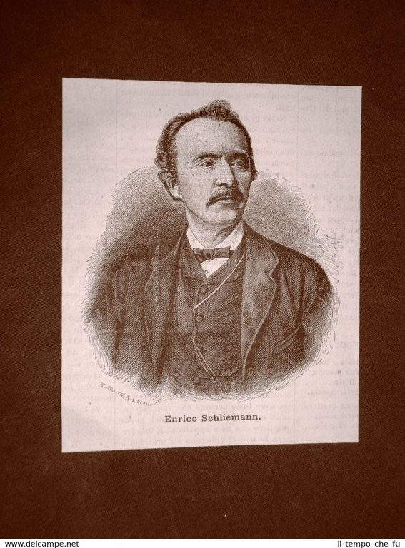 Rara Incisione Estratta da Rivista d'epoca del 1881 . .incisione che ha quindi oltre 135 anni! Heinrich Schliemann nel 1881 Archeologo Neubukow, 6 gennaio 1822 - Napoli, 26 dicembre 1890 EP1881-003 Dimensioni Cm 10,00 x 13,00 Qualora vogliate delle scansioni migliori contattateci, soddisferemo ogni vostra richiesta. PaypalCarta di creditoBonifico bancario Accuratamente adagiate su un cartoncino e protette da pellicola trasparente rigida,il tutto viene inserito dentro plico di adeguate dimensioni per proteggerne l'integrità.