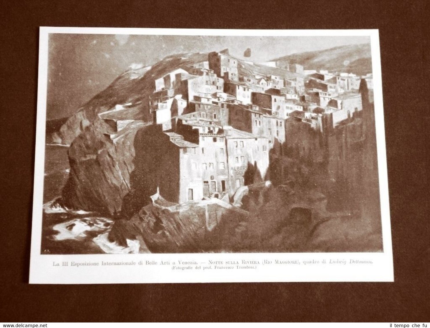 Rara stampa Estratta da Rivista d'epoca del 1899 . .stampa che ha quindi oltre 116 anni! III Esposizione internazionale di belle arti di Venezia nel 1899 Notte sulla riviera (Rio Maggiore) Quadro di Lidwig Dettmann II1899-027 Dimensioni Cm 24,00 x 17,00 Qualora vogliate delle scansioni migliori contattateci, soddisferemo ogni vostra richiesta. PaypalCarta di creditoBonifico bancario Accuratamente adagiate su un cartoncino e protette da pellicola trasparente rigida,il tutto viene inserito dentro plico di adeguate dimensioni per proteggerne l'integrità.