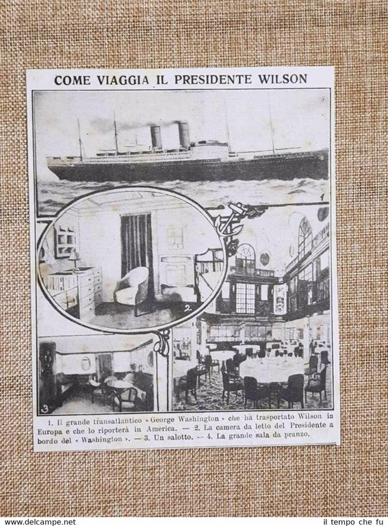 Rara stampa estratta da pubblicazione del 1919 Il grande transatlantico americano George Washington nel 1919 Marina U.S.A. Codice articolo: VIP-084 Dimensioni: Cm 12,00 x 15,00 Paypal Carta di credito Bonifico bancario Spedizione con posta ordinaria o raccomandata scelta dall'Acquirente nel momento del pagamento Clicca qui per accedere al nostro Store ed al suo sterminato archivio