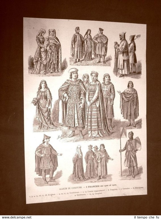 Rara Incisione Estratta da rarissima pubblicazione sul Teatro e la musica popolare del 1887 . .incisione che ha quindi oltre 129 anni! Rarità Il Teatro nel 1887 Costumi francesi o di Francia del 1300 - 1500 Borghesi, Gentildonne, Uomini ragguardevoli Cavaliere, Trappista, Certosino, Principessa, Gentiluomo TIMP1887-003 Dimensioni Cm 23,00 x 33,00 Qualora vogliate delle scansioni migliori contattateci, soddisferemo ogni vostra richiesta. PaypalCarta di creditoBonifico bancario Accuratamente adagiate su un cartoncino e protette da pellicola trasparente rigida,il tutto viene inserito dentro plico di adeguate dimensioni per proteggerne l'integrità.