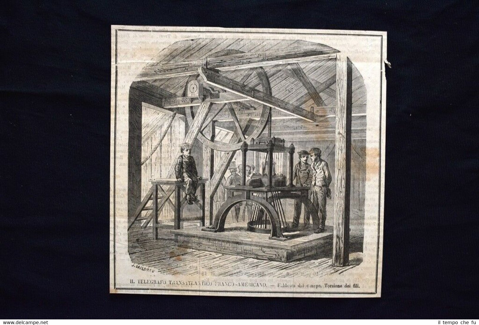 Rara incisione estratta da pubblicazione del 1869. .incisione che ha quindi oltre 150 anni! Il telegrafo transatlantico franco-americano Fabbrica del canape. Torsione dei fili Dimensioni Cm 18,00 x 18,00 EP1869 - 002 Qualora vogliate delle scansioni migliori contattateci, soddisferemo ogni vostra richiesta. Paypal Carta di credito Bonifico bancario Accuratamente adagiate su un cartoncino e protette da pellicola trasparente rigida, il tutto viene inserito dentro plico di adeguate dimensioni per proteggerne l'integrità.
