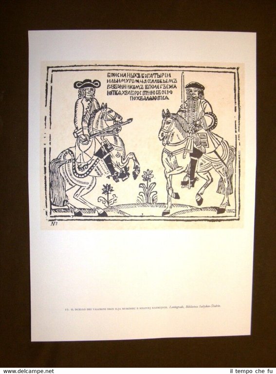 Stampa estratta da pubblicazione di metà '900 Il duello dei valorosi eroi Ilja Muromec e Solovej Razbojnik Biblioteca Saltykov-Scedrin Leningrado + Il sole, i segni dello Zodiaco e le stagioni Museo Puskin Mosca Arte popolare russa Russia STAPO - 027 Dimensioni Fronte/retro Cm 25,00 x 34,00 + Cm 25,00 x 34,00 Qualora vogliate delle scansioni migliori contattateci, soddisferemo ogni vostra richiesta. Paypal Carta di credito Bonifico bancario Accuratamente adagiate su un cartoncino e protette da pellicola trasparente rigida, il tutto viene inserito dentro plico di adeguate dimensioni per proteggerne l'integrità.