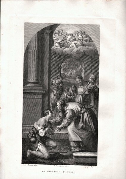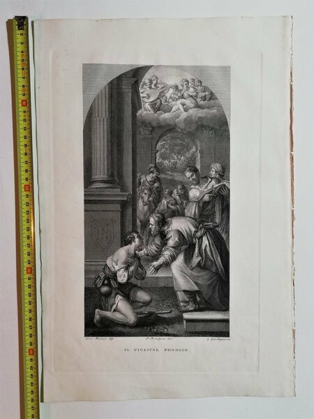 Stampa Incisione F. Rosaspina Il figliuol prodigo cm. 46 x 30 1830