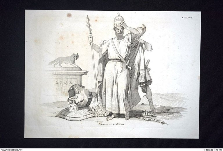 Preziosa ottocentina allegorico - caricaturale Tema: Ai tempi di Papa Silvestro I, l'imperatore Costantino aveva innestato la tiara dei vescovi nella corona imperiale: quasi una previsione dell'epoca in cui Pio IX avrebbe innestato la corona dei re nella tiara dei vescovi Bella e rara incisione all'acquaforte di satira pungente e dissacrante sui Moti del 1848, detti anche Rivoluzione del '48 o Primavera dei Popoli, che sconvolsero l'Italia e tutta l'Europa nel 1848 e 1849. Estratta dall'introvabile: Don Pirlone a Roma. Memorie di un Italiano dal 1°settembre 1848 al 31 dicembre 1850. Autore: Michelangelo Pinto Editore: Alessandro Fontana Anno di pubblicazione: 1851 DON PIRLONE - 023/CCXCI Dimensioni Cm 22,00 x 16,00 Qualora vogliate delle scansioni migliori contattateci, soddisferemo ogni vostra richiesta. Contesto storico: I moti del 1848, detti anche rivoluzione del '48 o Primavera dei popoli furono un'ondata di moti rivoluzionari borghesi che sconvolsero l'Europa nel 1848 e nel 1849. Scopo dei moti fu abbattere i governi della Restaurazione per sostituirli con governi liberali. Il loro impatto storico fu così profondo e violento che nel linguaggio corrente è entrata in uso l'espressione «fare un quarantotto» per sottintendere una improvvisa confusione e scompiglio. La prima agitazione europea del 1848 si verificò in Italia: la rivoluzione siciliana che esplose il 12 gennaio di quell'anno, che rappresentò la prima miccia dell'esplosione europea. L'insurrezione siciliana, infatti, spinse in un primo momento i Borbone a concedere il ritorno nell'Isola alla costituzione del 1812. Seguì una rivoluzione a Napoli, il 27, che costrinse, due giorni dopo, Ferdinando II a promettere una Costituzione, promulgata l'11 febbraio. Lo stesso 11 febbraio Leopoldo II di Toscana, cugino primo dell'imperatore Ferdinando I d'Austria, concesse la Costituzione, nella generale approvazione dei suoi sudditi. L'esempio borbonico fu seguito da Carlo Alberto di Savoia con lo Statuto Albertino e da Papa Pio IX con lo Statuto Fondamentale. Solo il re piemontese mantenne però lo Statuto. In Sicilia il parlamento proclamò in marzo l'indipendenza, che sarebbe durata fino al maggio 1849. Nel napoletano la concessione e la successiva repressione delle libertà costituzionali, portò dal maggio al settembre di quell'anno a una serie di moti. In tutto il Regno Lombardo-Veneto scoppiarono rivolte, come le Cinque giornate di Milano che sfociarono nella prima guerra di indipendenza. Nello Stato Pontificio una rivolta interna estromise papa Pio IX dai suoi poteri temporali e portò alla costituzione della Repubblica Romana. La rivoluzione delle Cinque giornate di Milano e altre proteste indussero il Re Carlo Alberto a dichiarare guerra all'Austria. Le truppe vennero presto sconfitte e solo quelle francesi poterono far retrocedere gli austriaci. La successiva ascesa al trono di Vittorio Emanuele II fece del Piemonte il motore propulsore del processo di unificazione italiana che tuttavia si sarebbe ottenuto solo nel 1861. Per quanto i Moti del '48 furono sedati abbastanza velocemente, le vittime furono decine di migliaia: il destino della democrazia europea ci è sfuggito di mano dichiarerà Pierre-Joseph Proudhon. Gli storici concordano che la Primavera dei popoli fu, alla fin fine, soprattutto un sanguinoso fallimento, se si eccettua la concessione dello Statuto Albertino nel Regno di Sardegna da parte di Carlo Alberto di Savoia, l'unica costituzione non revocata di quelle concesse o votate nel 1848-49. Vi furono tuttavia radicali e notevoli effetti a lungo termine: Germania e Italia sarebbero presto arrivate all'unificazione facendo leva anche sulla necessità di autodeterminazione dei popoli. Analogamente l'Ungheria sarebbe giunta ad un parziale riconoscimento della propria autonomia (a discapito della popolazione slava) grazie all'Ausgleich del 1867. In Prussia e Austria fu abolito il feudalesimo, mentre in Russia fu eliminata la servitù della gleba nel 1861. Tavola allegorico - caricaturale sullo stato dell'Italia del tempo, incisione su rame ricca di significato e rappresentazione mediante satirica dissacrante della condizione della nostra penisola oppressa. Le tavole dell'opera furono in parte riprese dal giornale romano Don Pirlone, quotidiano, uscito dal 1 settembre 1848 al 2 luglio 1849 (con una interruzione dl 29 aprile al 7 maggio 1849), ma in parte furono realizzate appositamente per questa opera. Tra gli incisori sono presenti anche i nomi di Ratti, Vaiani, Monneret, Gallucci, Pichi, Masutti. Il titolo Don Pirlone deriva quasi sicuramente da una maschera creata dallo scrittore satirico Girolamo Gigli (1660 - 1722). Si trattava di una specie di Tartufo molieresco, ispirato ad una figura reale, il canonico Feliciati di Sarteano. Nei tre volumi l'avvocato Michelangiolo Pinto raccolse tutto il pubblicato del giornale, che fu il più temuto e allo stesso tempo il più apprezzato tra i molteplici giornali satirici che si pubblicavano nella Roma d