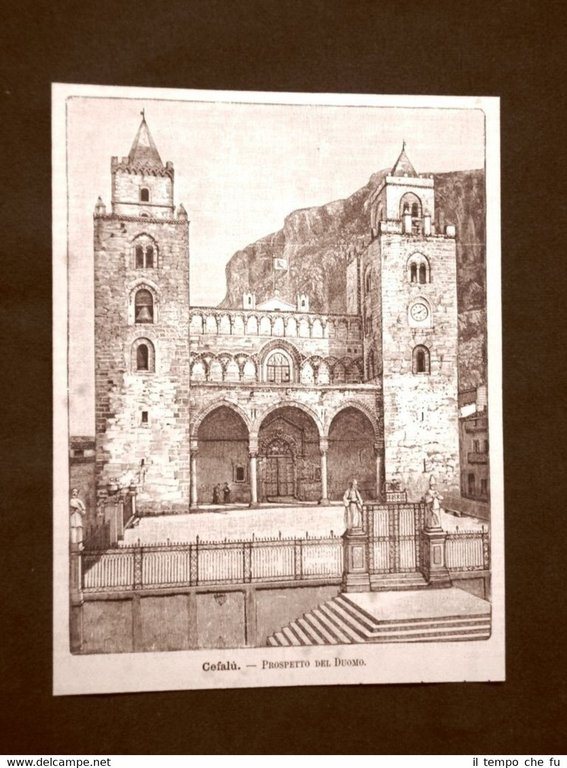 Incisione del 1891 Cefalù, Prospetto del Duomo - Sicilia | Stampe |